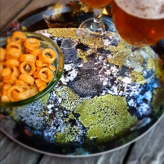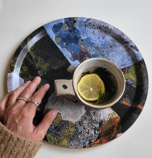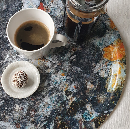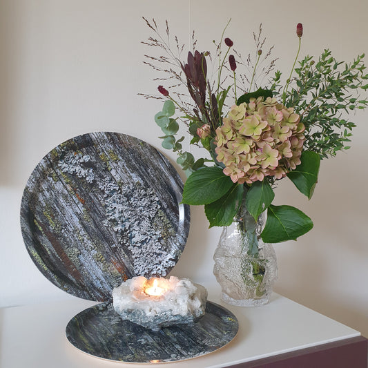 Bricka 39cm "Sten i grått och grönt"