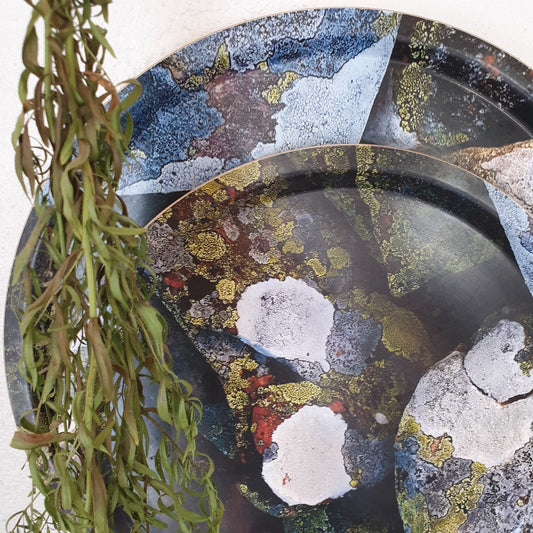 Bricka 31cm "Sten i grått och grönt"